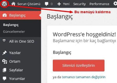 WordPress Admin Bar’dan WordPress Menüsünü Kaldırma
